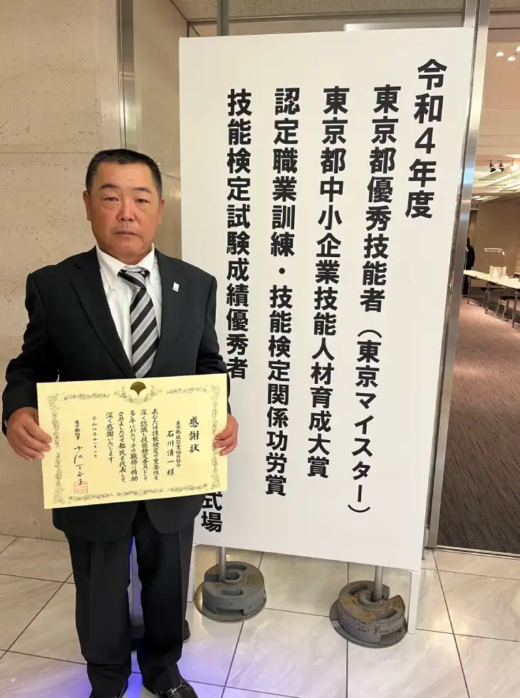 安全技術工事部 石川部長、技能検定員活動に対し都知事より感謝状授受