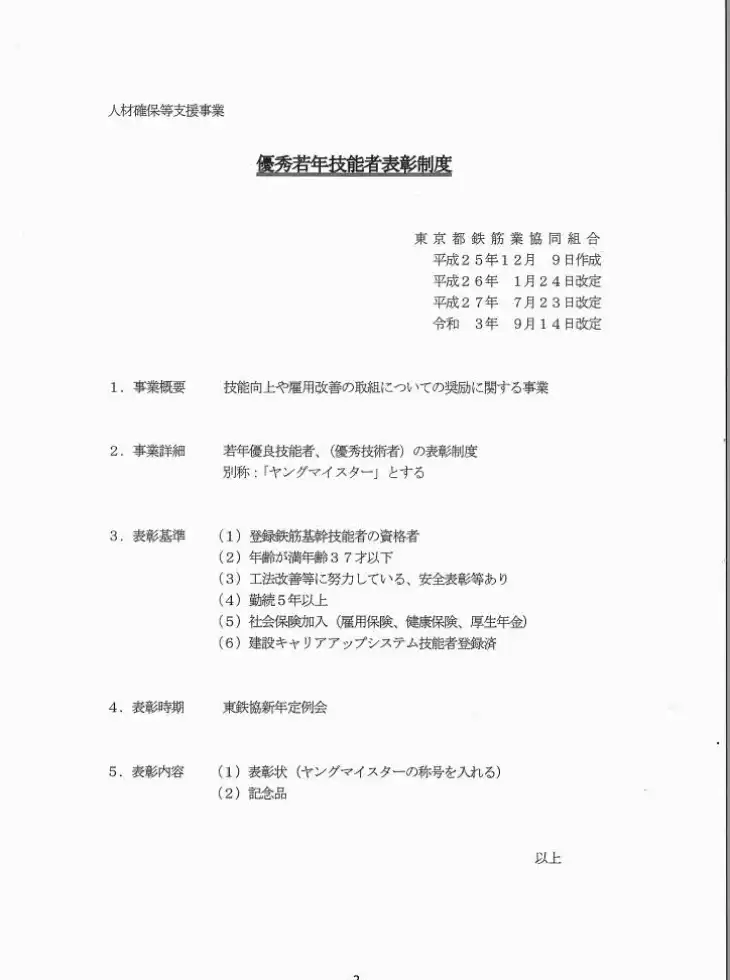 優秀若年技能者表彰