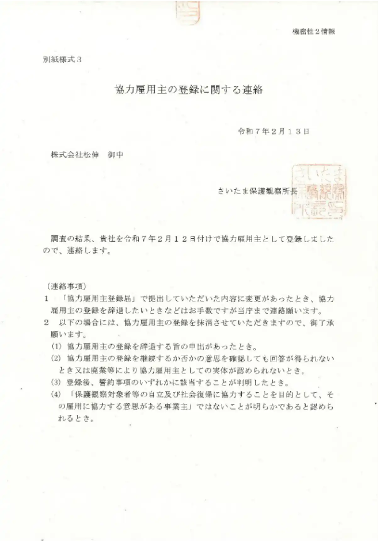 「保護観察社会復帰プログラム(コレワーク)」協力雇用主として登録
